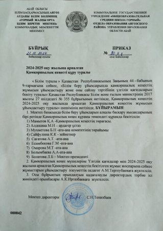 "Горный ЖОББМ" КММ Қамқоршылық кеңесті құру туралы