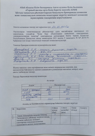"Горный ЖОББМ" КММ Тамақтанудың сапасына мониторинг наурыз айы