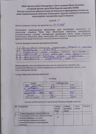"Горный ЖОББМ" КММ-де тамақтанудың сапасына мониторинг қараша айы