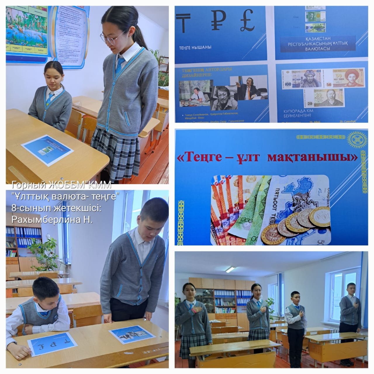 Абай облысы білім басқармасы Аягөз ауданы білім бөлімінің "Горный жалпы орта білім беретін мектебі" КММ-де Ұлттық валюта күніне байланысты "15 қараша - Ұлттық валюта- теңге күні" тақырыбында сынып сағаттары өткізілді. Ұлттық валюта - теңгенің маңызын, оның Қазақстан экономикасындағы рөлі түсіндірілді.