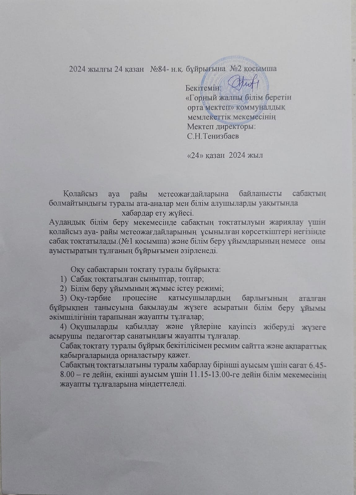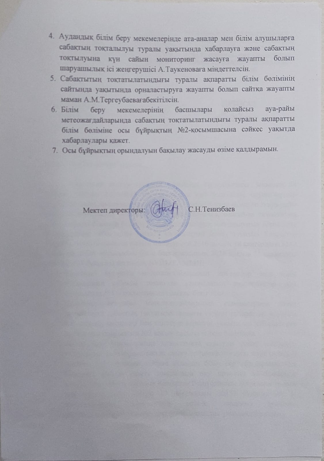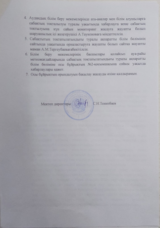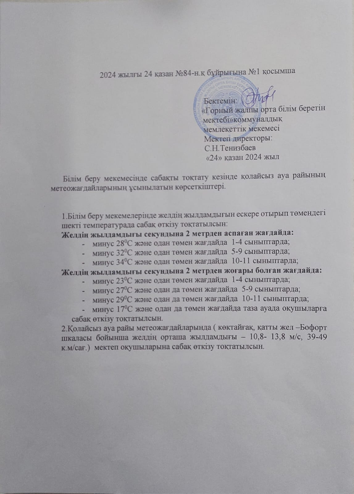 » "Горный ЖОББМ" КММ Температуралық режим, қысқы мезгілде сабақ өткізуді ұйымдастыру туралы