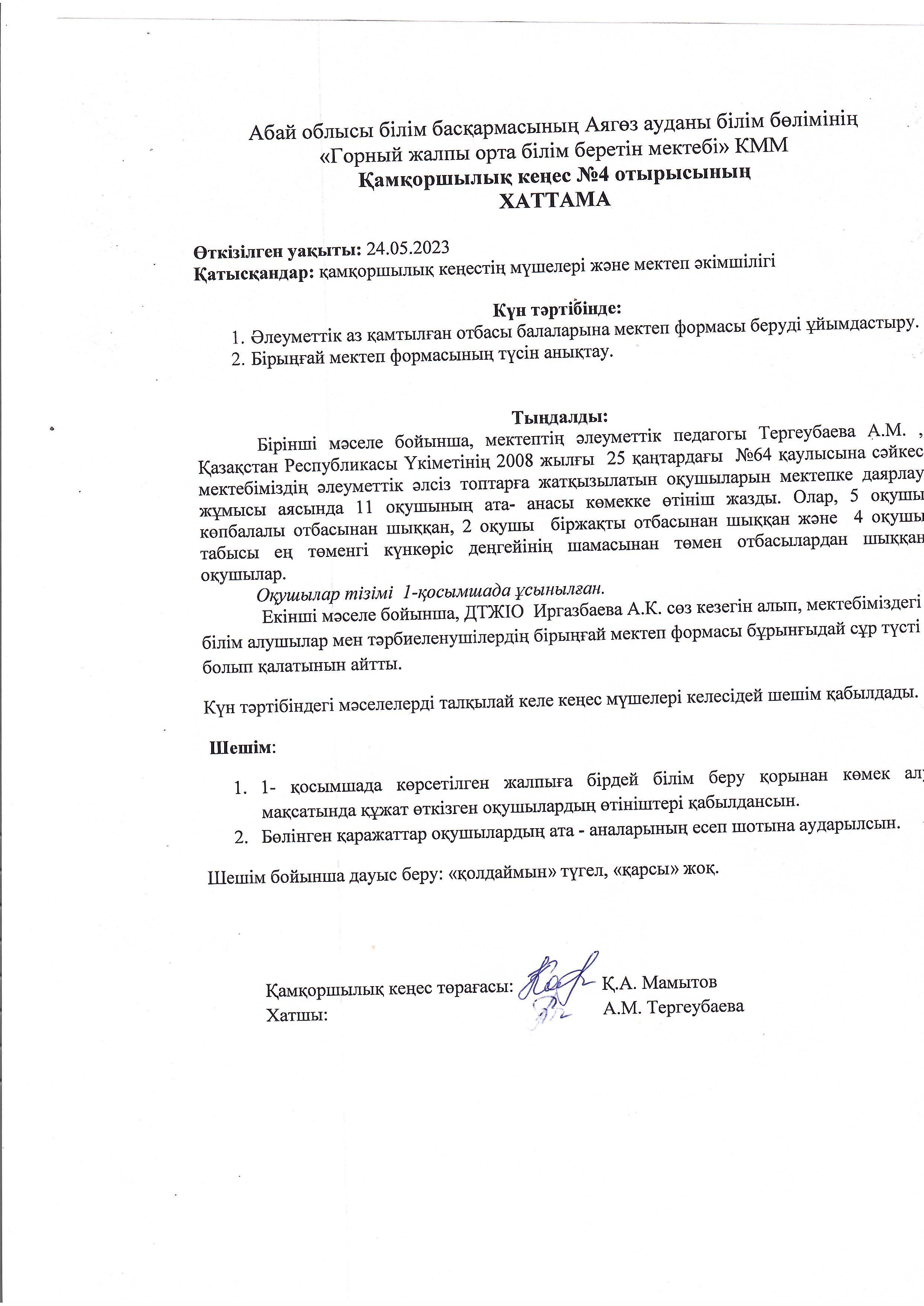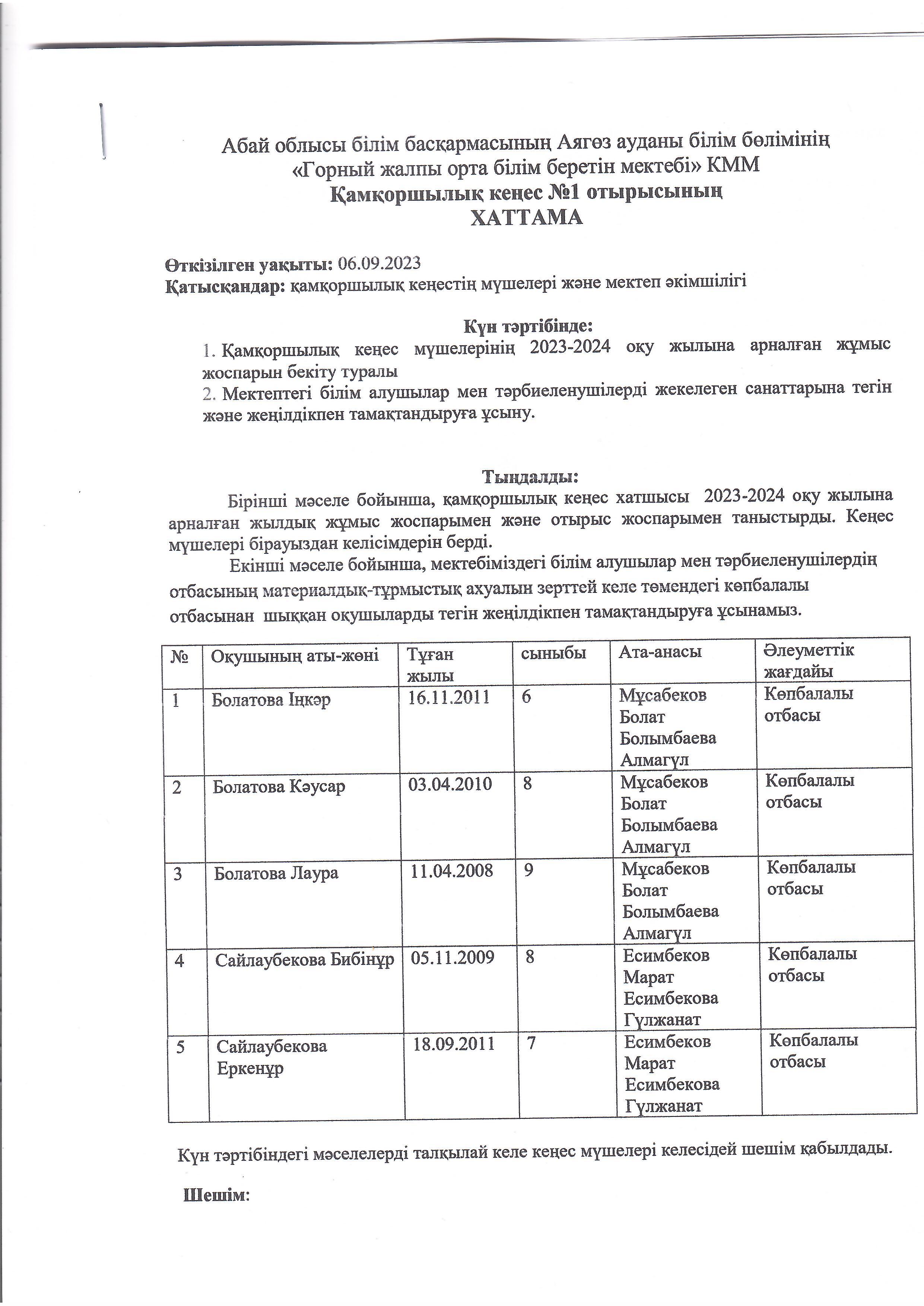 "Горный жалпы орта білім беретін мектебі"КММ- де Қамқоршылық кеңес жиналыстары болды.
