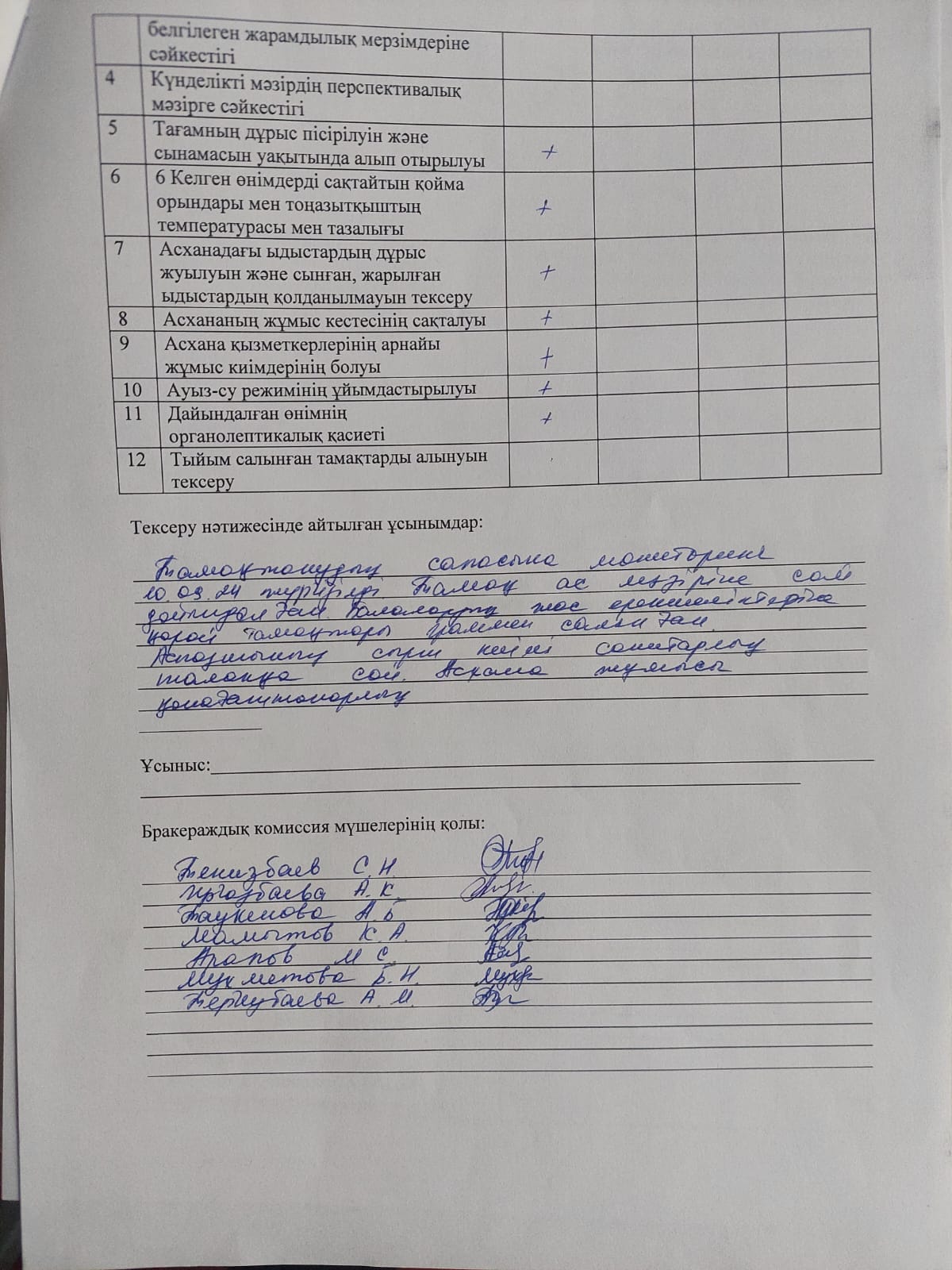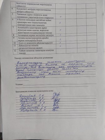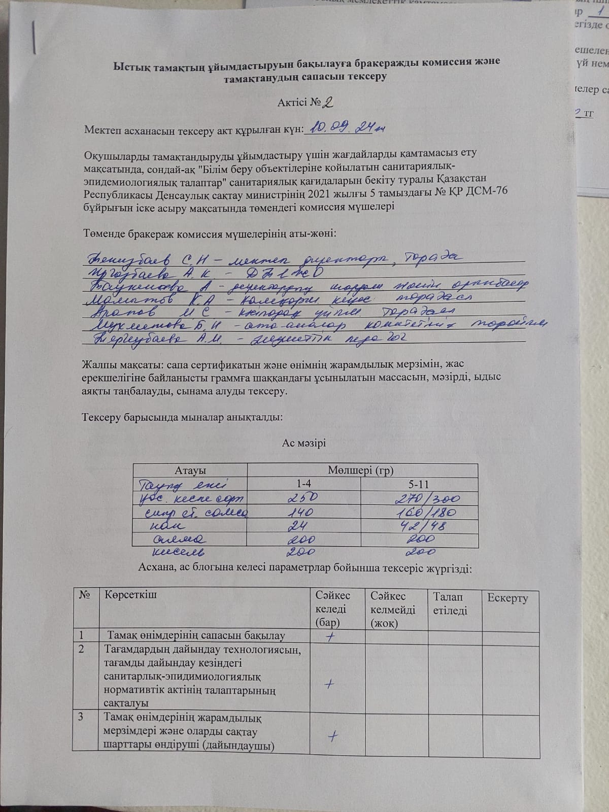 » Ыстық тамақтың ұйымдастыруының бракеражды комиссия тексерісінің қыркүйек айының қорытындысы