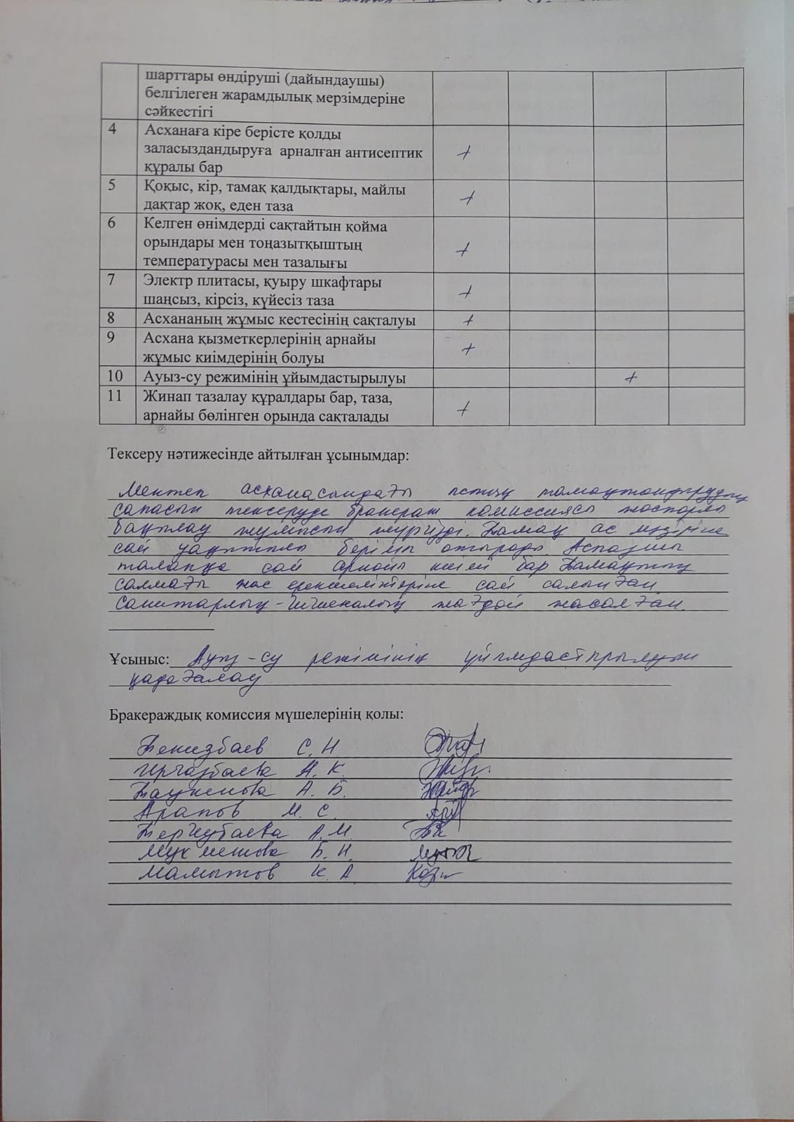 » Ыстық тамақтың ұйымдастыруының бракеражды комиссия тексерісінің наурыз айының қорытындысы
