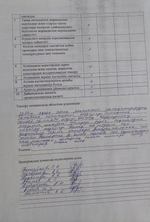 » Ыстық тамақтың ұйымдастыруының бракеражды комиссия тексерісінің ақпан айының қорытындысы