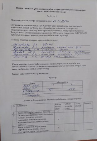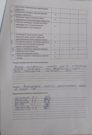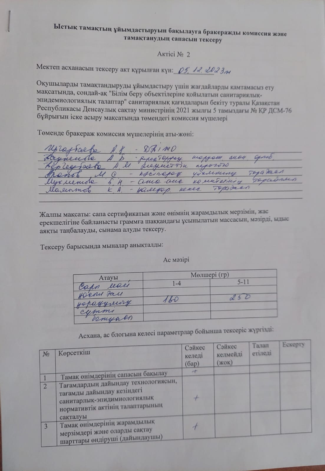 Ыстық тамақтың ұйымдастыруының бракеражды комиссия тексерісінің желтоқсан айының қорытындысы