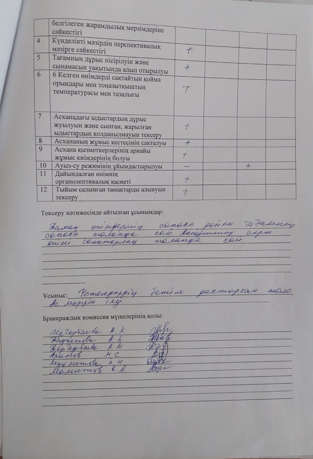 » Ыстық тамақтың ұйымдастыруының бракеражды комиссия тексерісінің желтоқсан айының қорытындысы