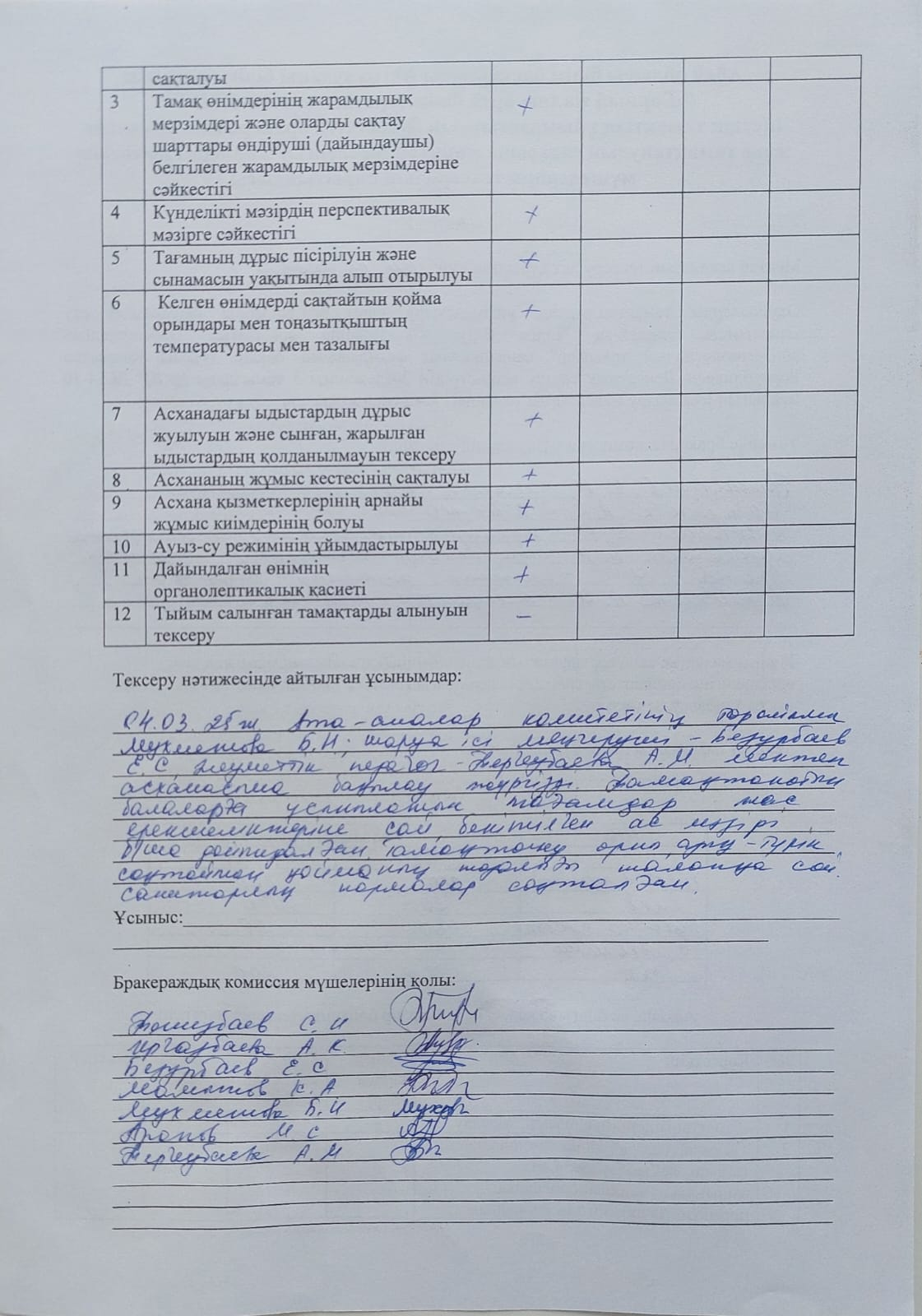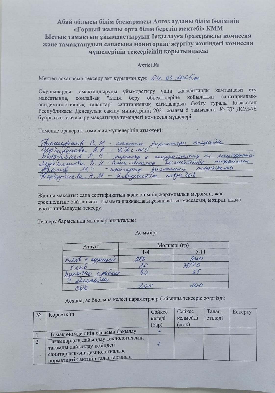 » "Горный ЖОББМ" КММ Тамақтанудың сапасына мониторинг наурыз айы